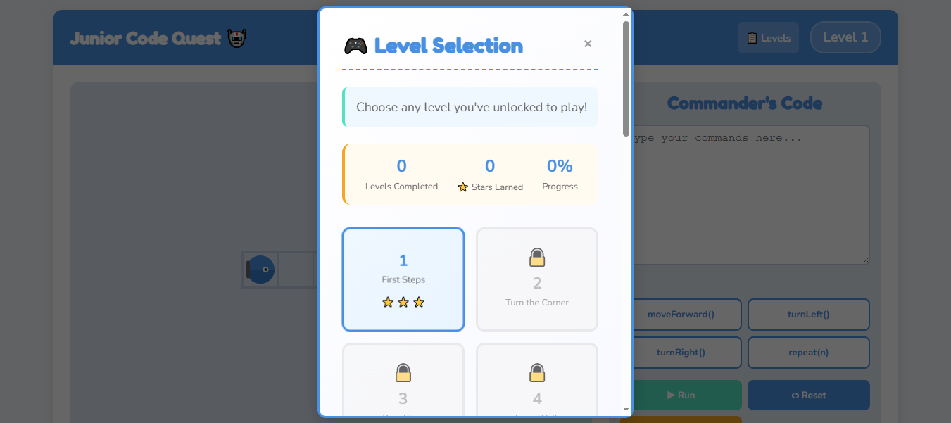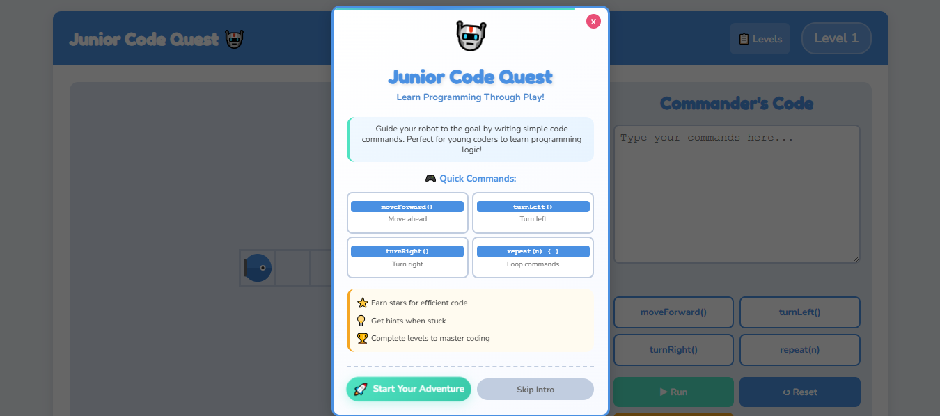 Junior Code Quest transforms learning programming into an exciting adventure! Perfect for beginners, students, and young aspiring developers who want to understand coding concepts through interactive gameplay.